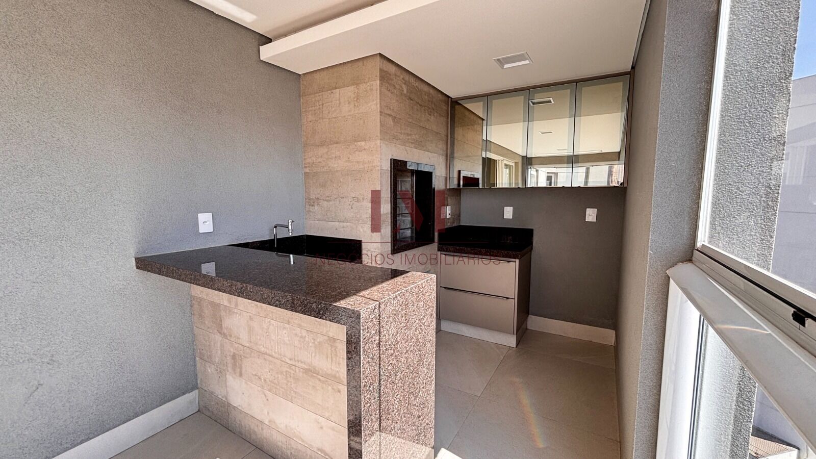 -Sacada gourmet com cortina de vidro