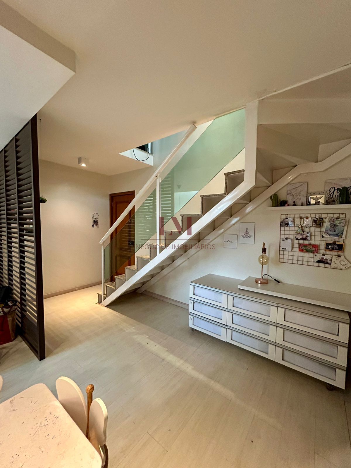No 1º piso: hall de entrada, sala em dois ambientes com pé direito duplo, cozinha, lavanderia, 2 quartos, 1 suíte, banheiro social