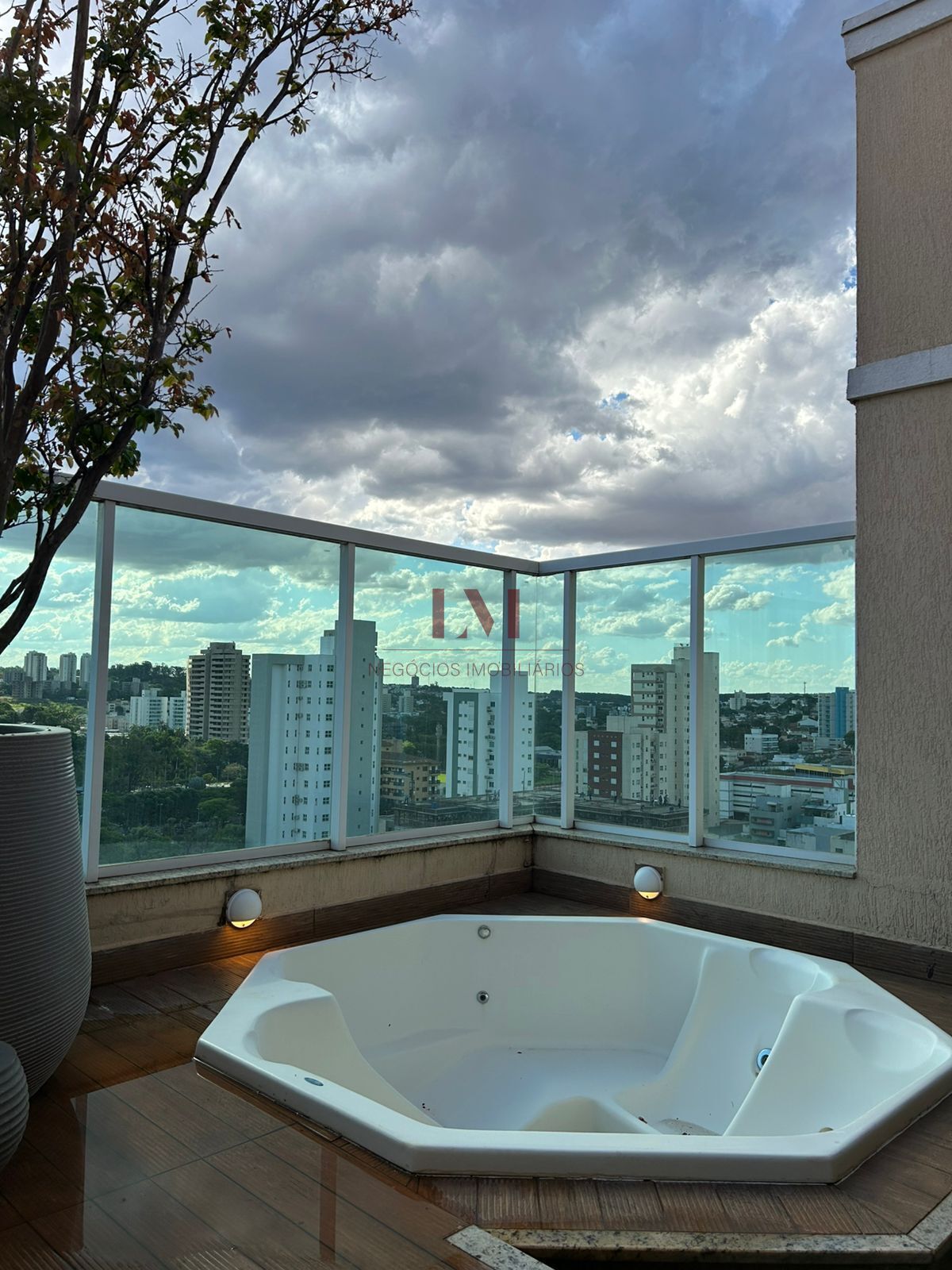 No 2º piso: Quarto, sala, varanda gourmet com hidromassagem e churrasqueira, lavabo.