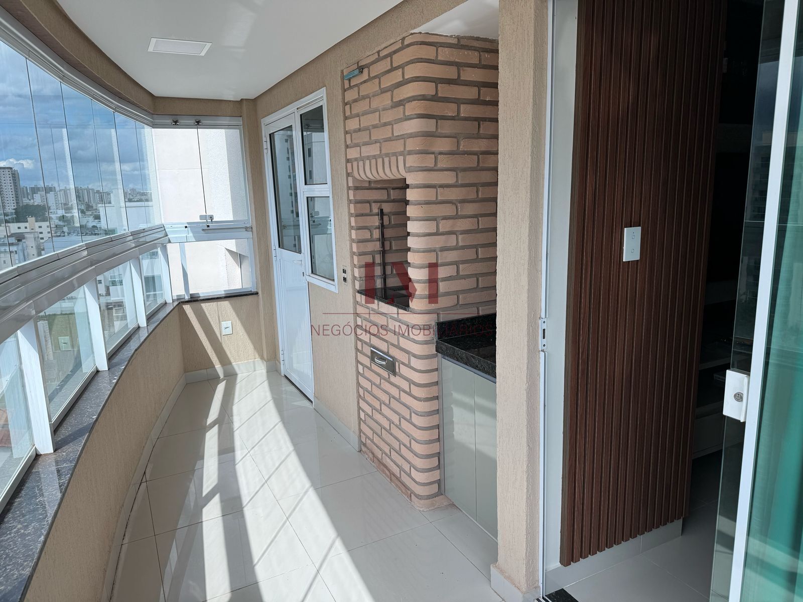 -Varanda gourmet com churrasqueira e cortina de vidro