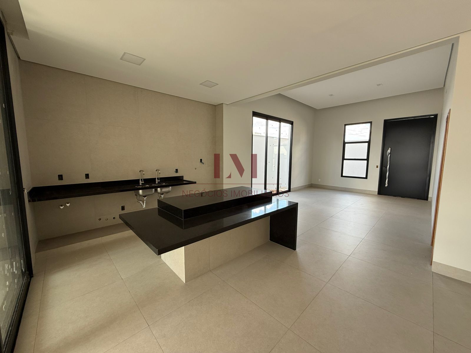 • Cozinha com ilha em granito, duas cubas e copa integrada ao ambiente social