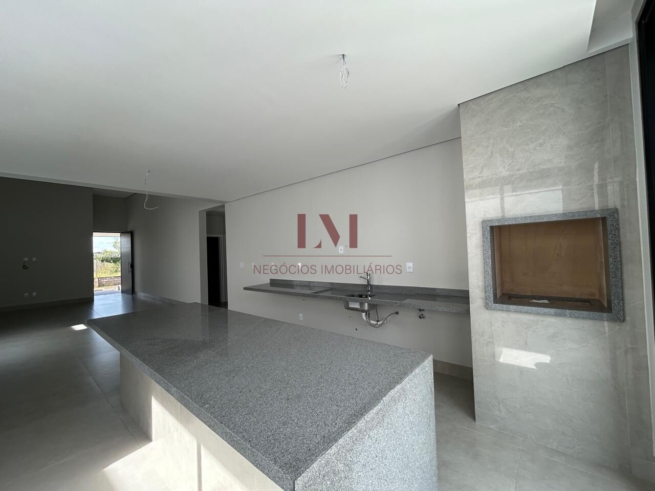 -Sala com 02 ambientes integrada com a cozinha gourmet que possui ilha de pedra e churrasqueira