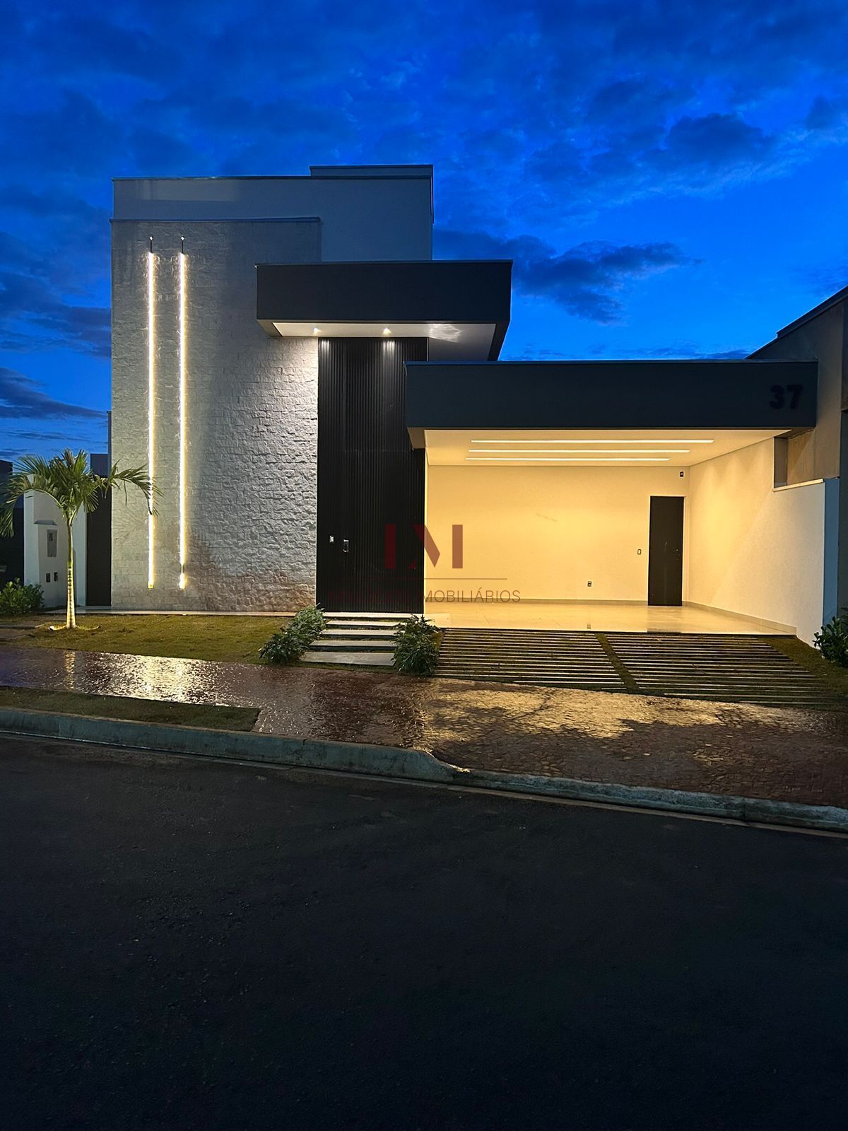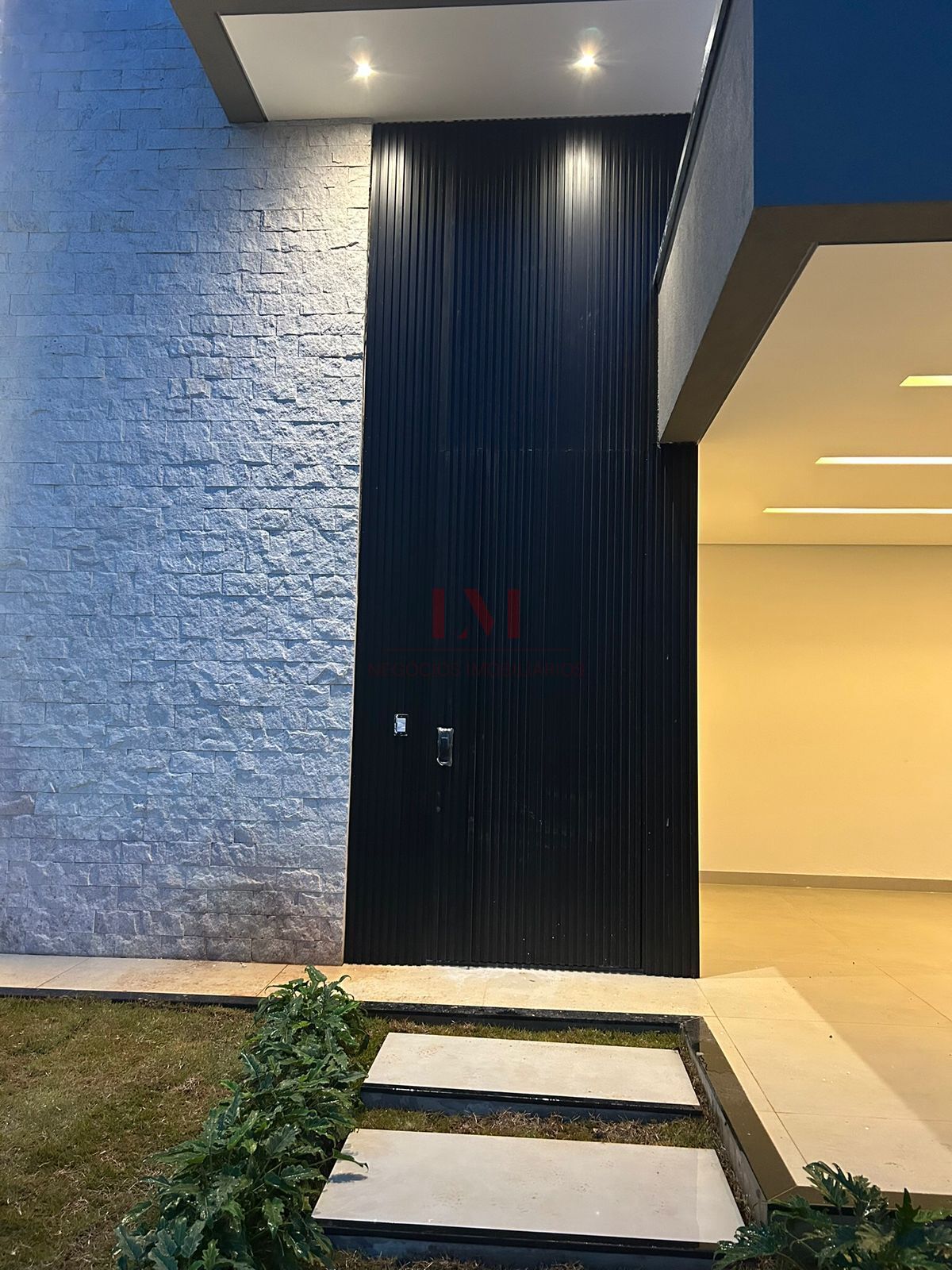 • Porta de entrada em alumínio ripado interno e externo, com painel em 5 metros de altura