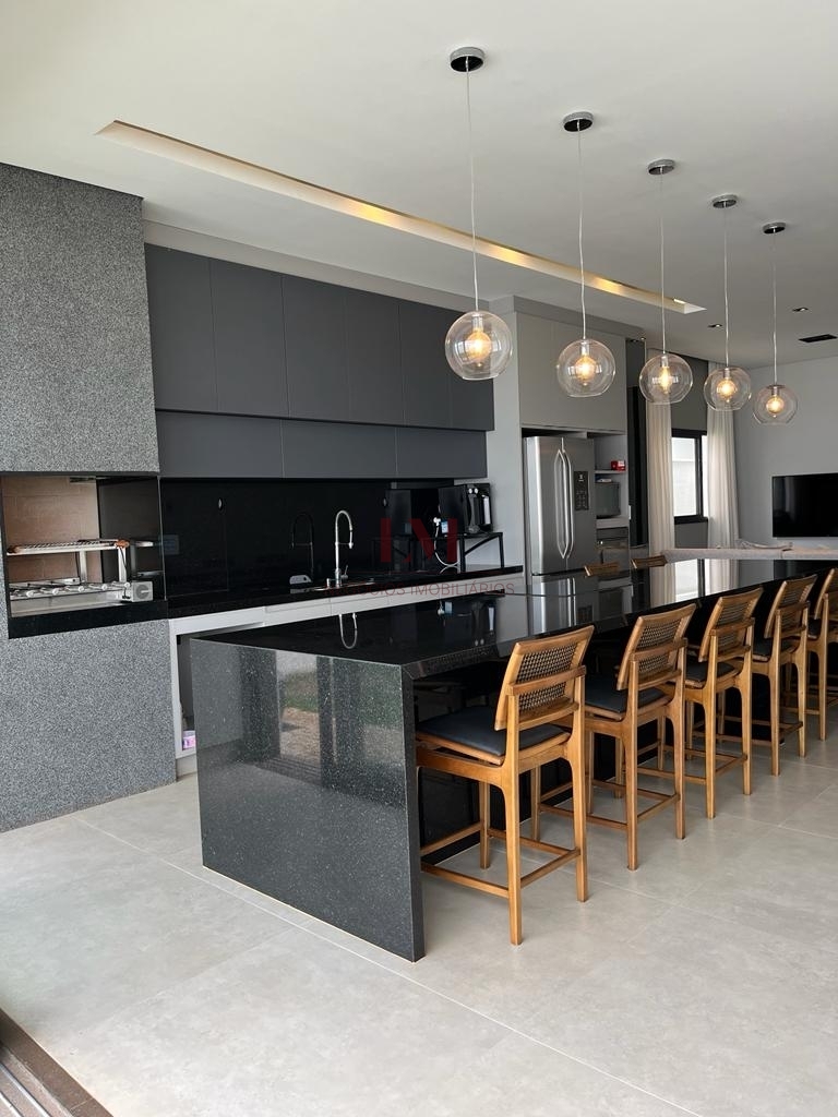 - Living com pé direito duplo integrado com a cozinha gourmet em conceito aberto com ilha;