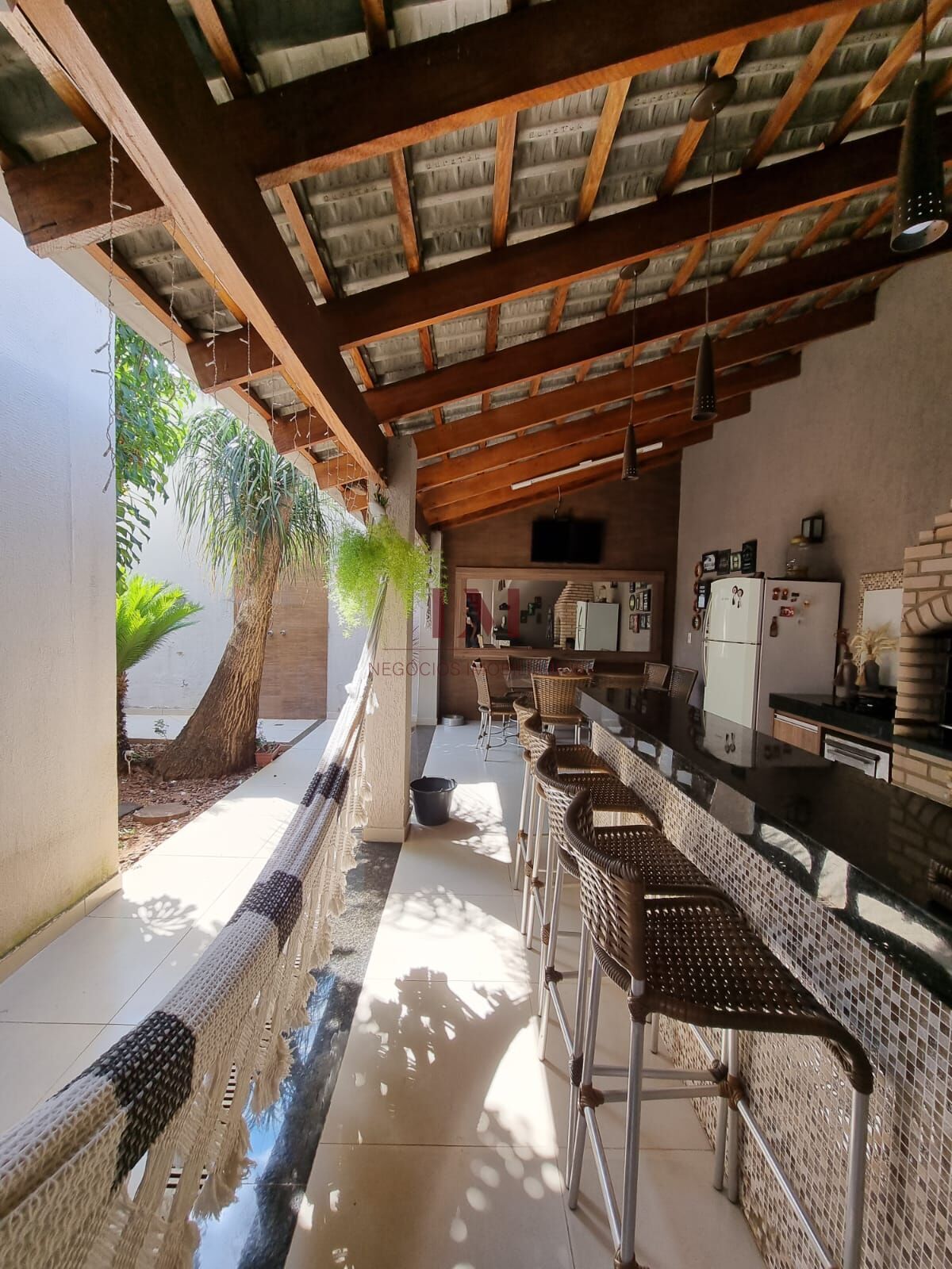Área de lazer ampla com churrasqueira