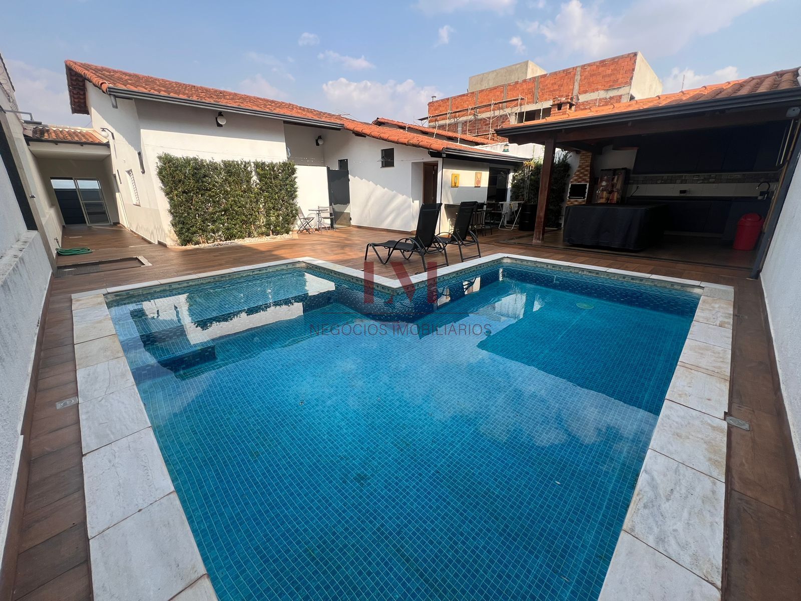 -Área de piscina com churrasqueira, ducha e banheiro
