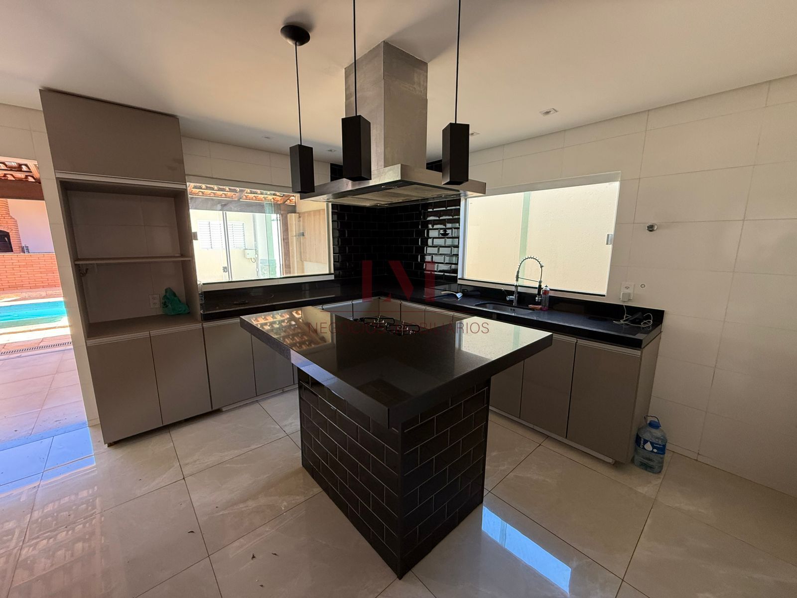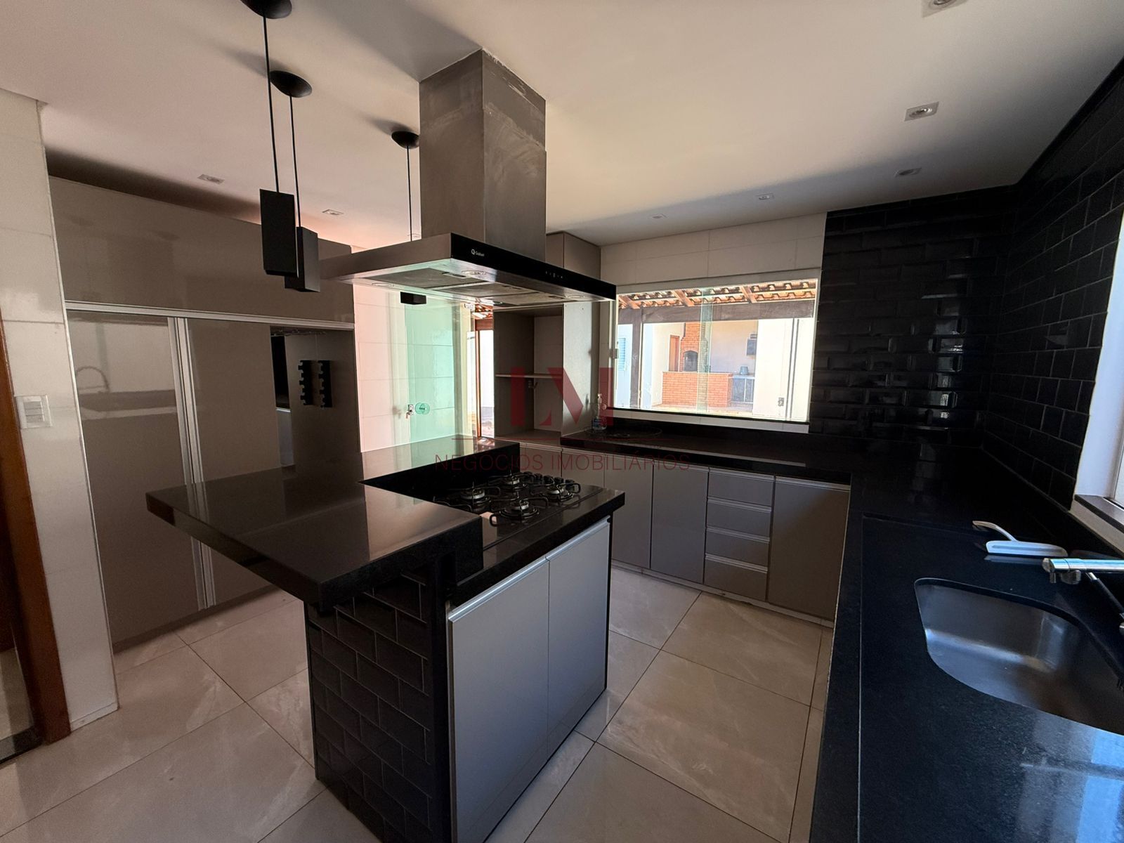 -Cozinha com ilha central com cooktop e coifa